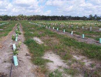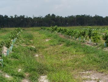 schedule. The goal is to have the canopies of the trees touching in the row within 24 months after planting, then initiate "bearing